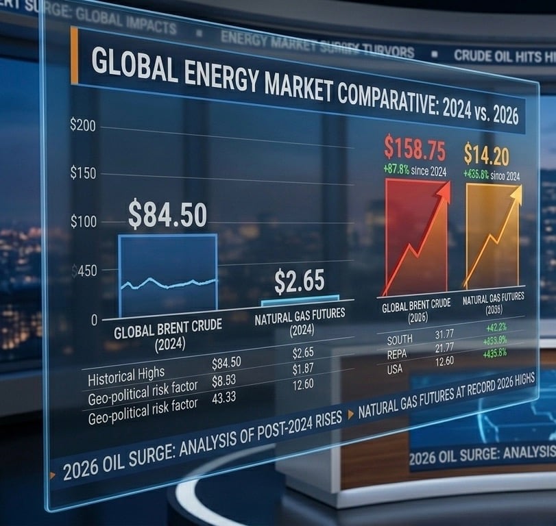 Oil prices surged 8%, marking the strongest single-day move in months and pushing benchmarks to their highest levels since 2024.