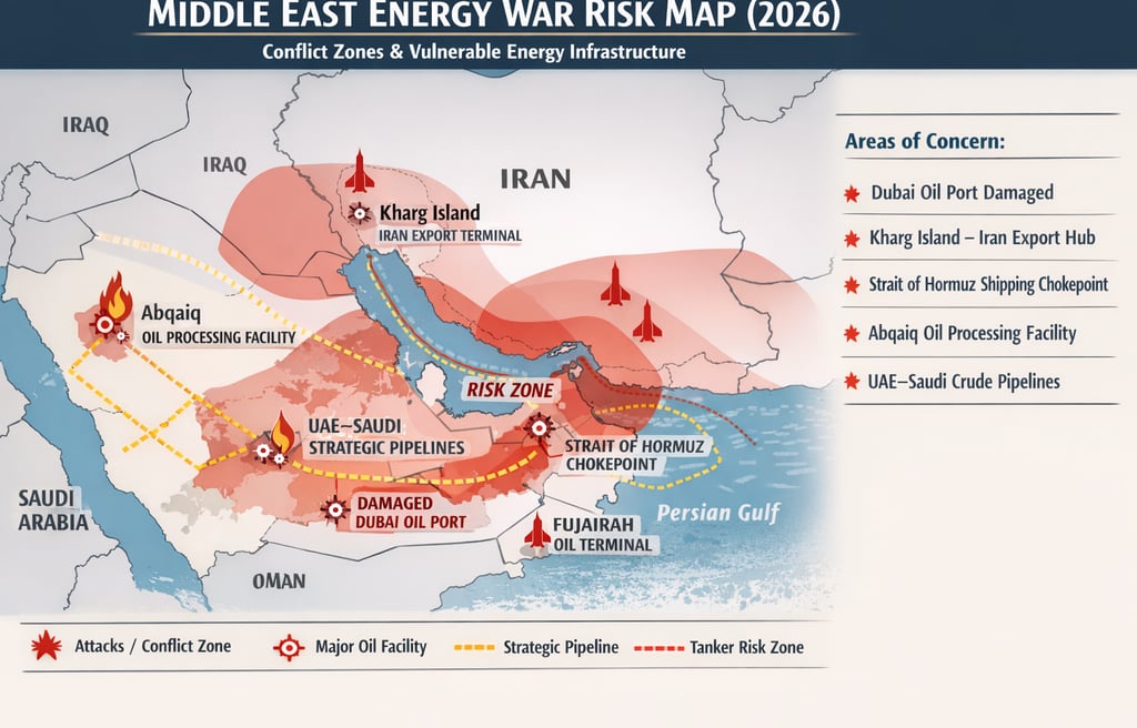 The United Arab Emirates is one of the world’s most important oil logistics centers, serving as a transit and storage hub for crude and refined products moving to Asia, Europe, and Africa.